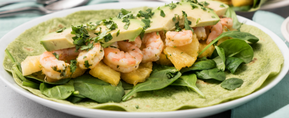 Wraps de salade de crevettes et ananas rôti